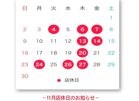 | 定休日 | 木曜日・金曜日 不定休の日もございますので事前に確認お願いします 木・金曜日祝日の場合は変更あり (変更時インスタにてご連絡します) |